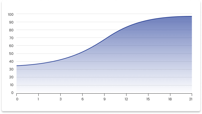 Výsledok po 21 dňoch: sluchový orgán senzibilizovaný na ľudskú reč, schopnosť plne porozumieť reči na preplnených a/alebo hlučných miestach