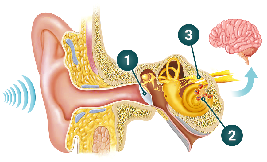 Toto sú 3 piliere, ktoré umožňujú správne fungovanie vášho sluchu. Ak trpíte poruchou sluchu, máte problémy s porozumením reči alebo počujete ako „v hmle" – znamená to, že jeden z pilierov vášho sluchu je poškodený a nevykonáva svoju funkciu.